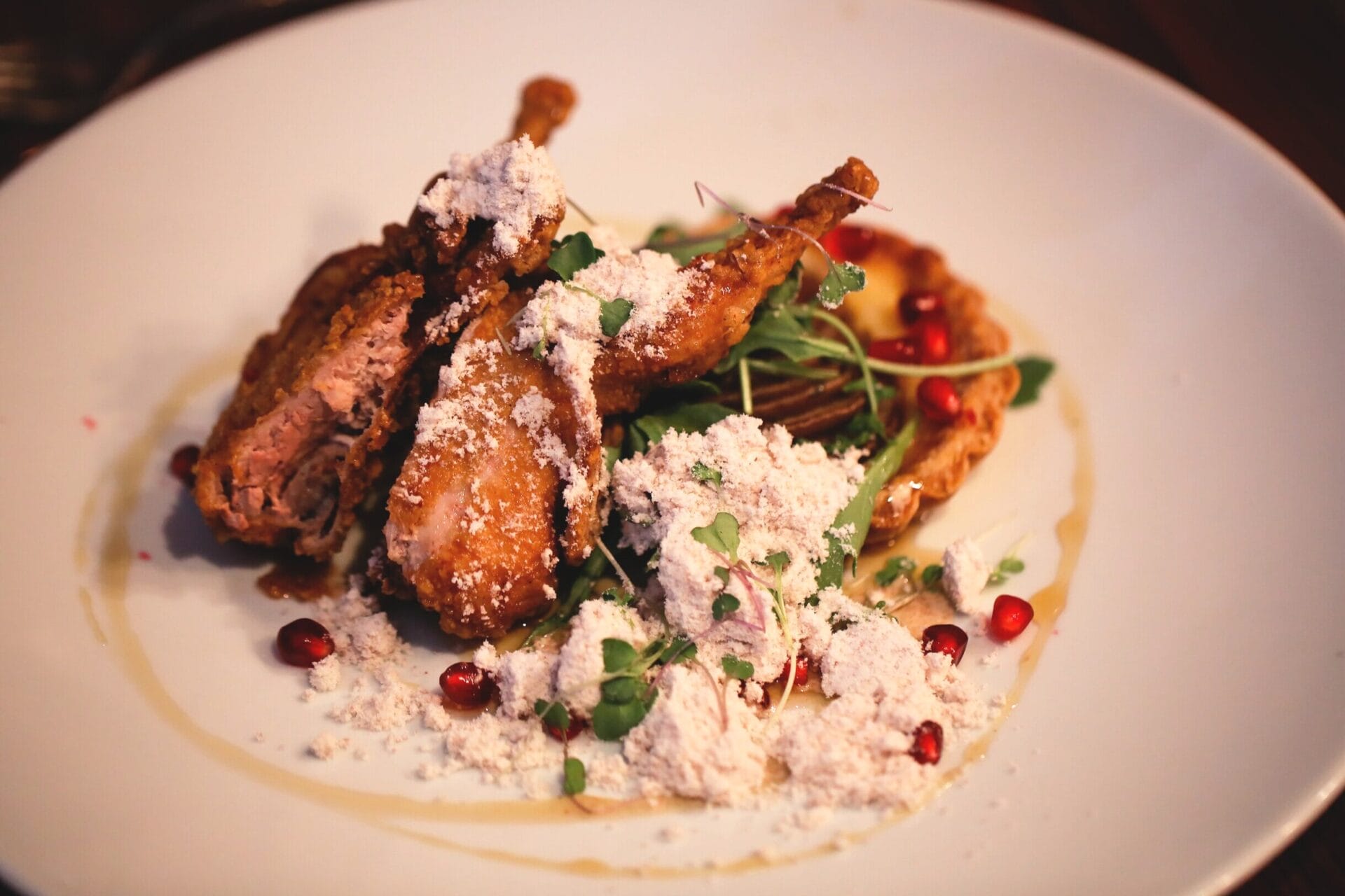 The critically acclaimed, AAA Four Diamond-rated Bedford Village Inn Restaurant in NH welcomes diners with contemporary, regionally sourced cuisine served in a warm environment. We’re proud to support local producers and farmers from here in New Hampshire as well as elsewhere in New England; they supply the eggs used in our fluffy soufflés and the maple syrup drizzling down our buttermilk pancakes – not to mention many of our fresh meats and mouthwatering cheeses. Seafood from the shores of the North Atlantic, pork from Niman Ranch, and grain-fed Angus beef from the Midwest round out some of the superior ingredients used in our kitchen.